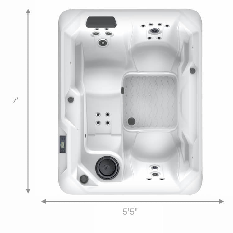 The three-seat Stride offers a lower step-over height for easy access. A comfortable lounge and adjustable jets leave you recharged and ready for the next challenge. People: 3 Seats Seating: Lounge Voltage: 115 V or 230 V Size: 7’ x 5’5” x 29” | 213 cm x 165 cm x 74 cm Water Care: FROG® In-Line Cartridge Ready Click the Icon Below to see spa