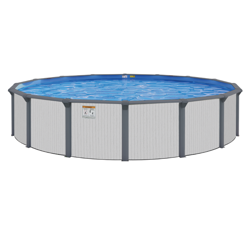 The White Haven Resin Above-Ground Pool combines timeless style with advanced resin construction for a durable, low-maintenance backyard centerpiece. Featuring a beautiful wood grain wall pattern paired with a rich gray resin frame, the White Haven enhances your outdoor space with a clean, upscale look that complements virtually any backyard setting.